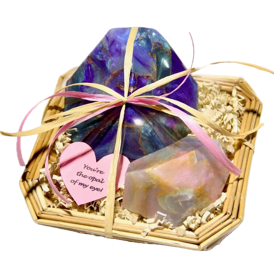 Featuring our best selling Opal SoapRocks, you will receive an Opal SoapRock and a White Opal Palmstone with a Valentine's Day gift message, wrapped perfectly to give away as a present to your loved one.