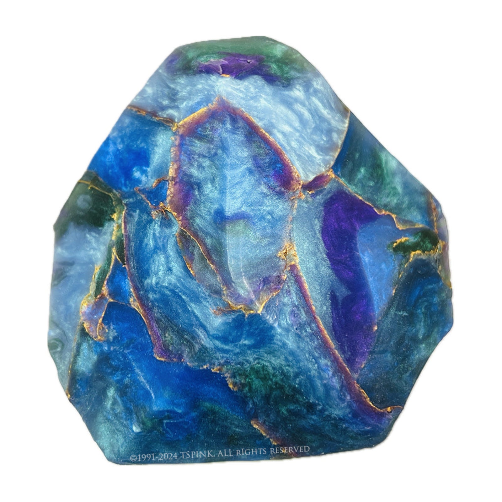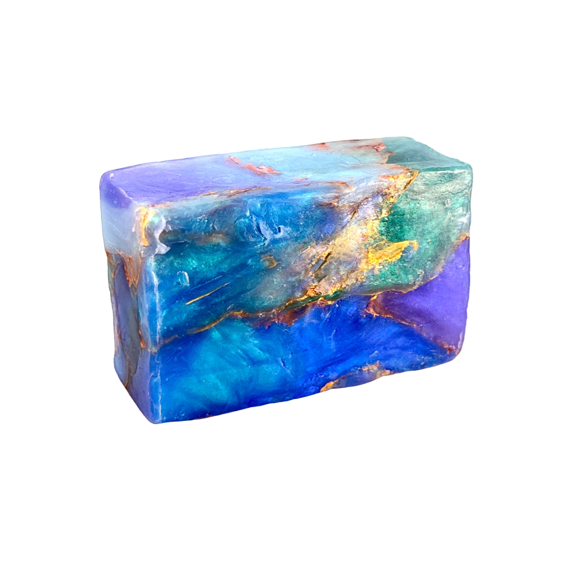 Each of the Gemstone SoapRocks® also comes in various sizes, and each is unique! All SoapRocks® are hand hewn and shapes may vary from piece-to-piece, so no two are exactly alike. Often they suggest actual crystal shapes in nature. Our original versions often matched the actual crystal system of many of the minerals, but we found we needed to choose a balance between reflecting the minerals true appearance and accommodating the need for the ease of use while washing. Ultimately, SoapRocks® have evolved with a moderate degree of artistic license into the many shapes you now find in our work. We hope you enjoy the variety.